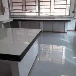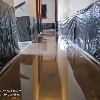 Revestimento monolítico autonivelante, aplicado em espessura variável de 1 a 4 mm, à base de resina Epóxi, com agregados e cargas minerais de alta dureza. Combina resistência, acabamento estético incomparável de auto brilho, com alta fluidez e auto acomodação, sem necessidade de aplicação forçada. Sua aplicação é indicada para áreas que necessitem de alta resistência mecânica atrelada à estética diferenciada, tais como Indústrias: Alimentícia, Farmacêuticas, Químicas, para Laboratórios, Centros de distribuição, Hospitais, salas limpas, Show Rooms, Concessionárias e oficinas de veículos, comércios, escritórios, entre outros.